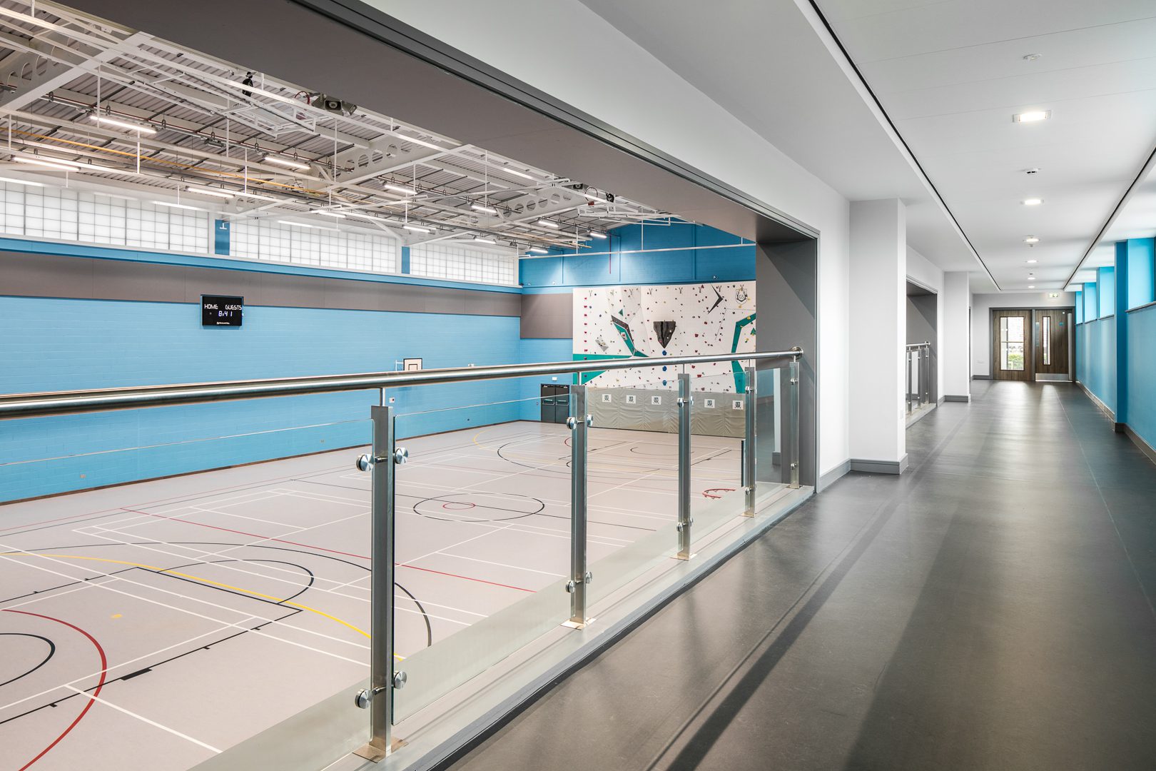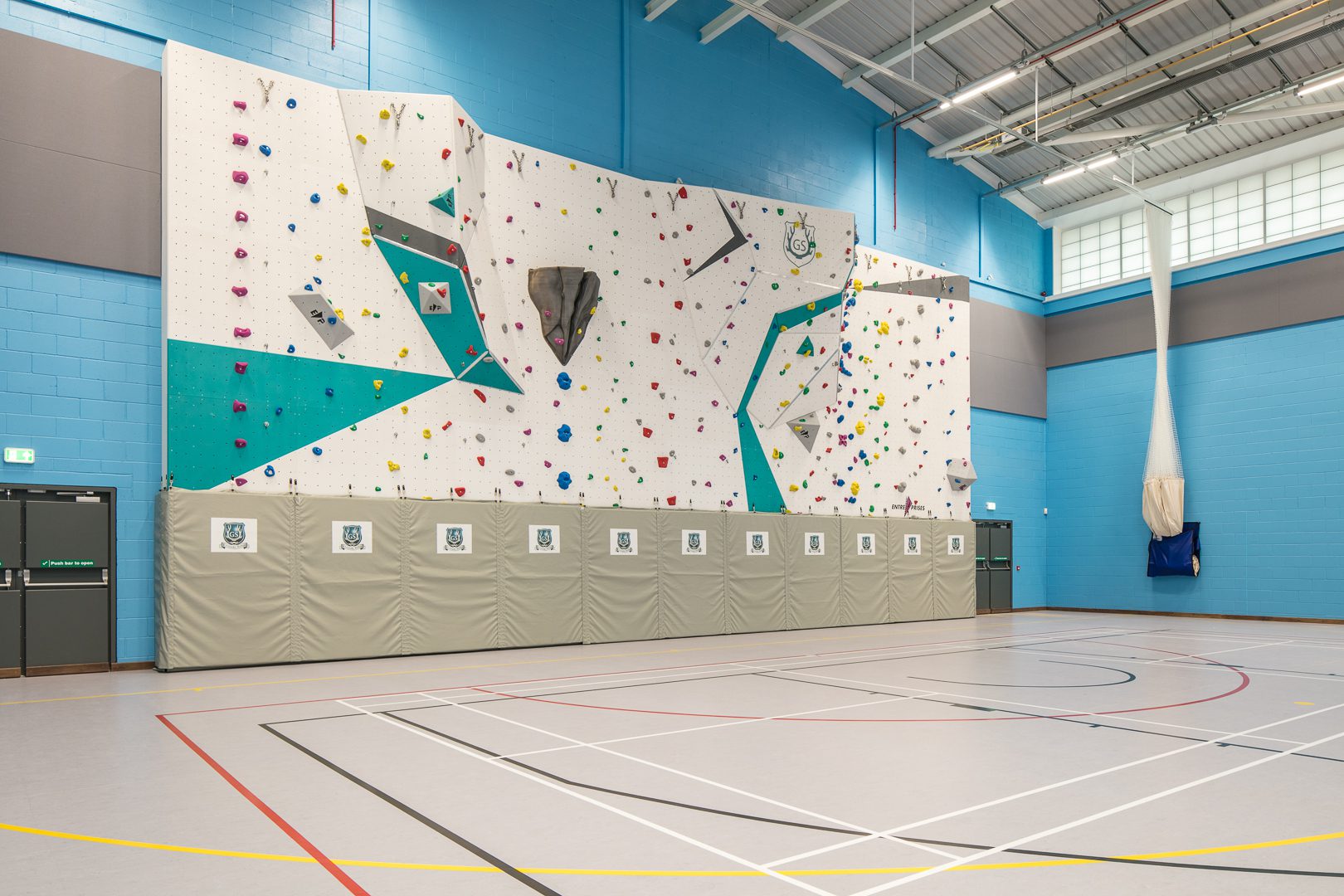 The new Sports Facility was completed in April 2019 and includes a 4-badminton court sports hall, a climbing wall, dance studio, fitness suite, multi-use space and changing rooms. In addition, the building includes ground floor classroom accommodation and Duke of Edinburgh storage. Offices at first floor have views overlooking the sports hall and an internal gallery provides a viewing area for spectators.